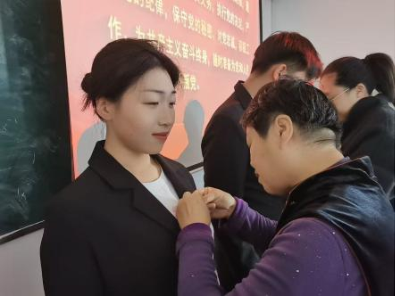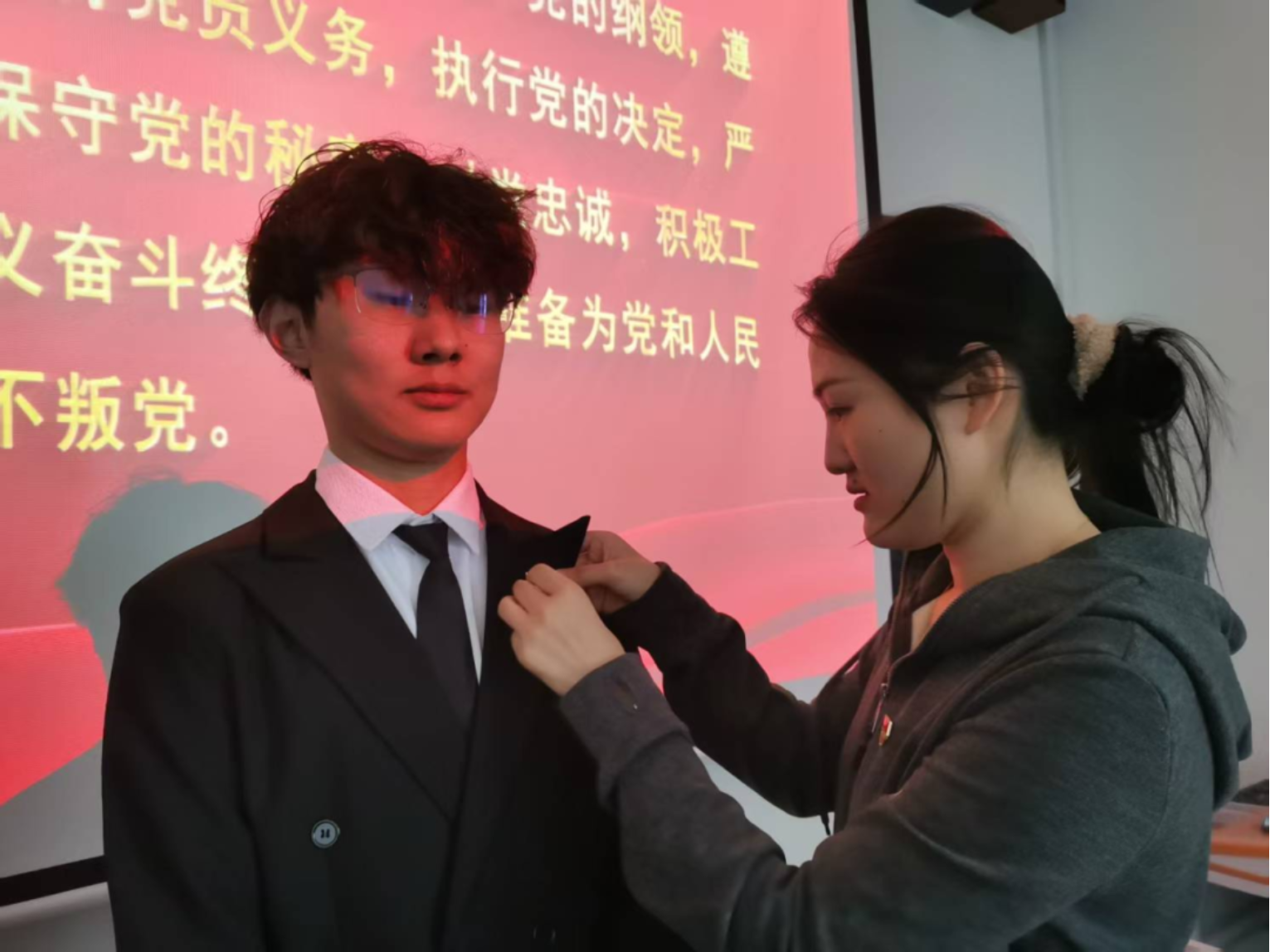 仪式在庄严的氛围中拉开序幕。首先,党总支书记李树平同志宣读了新发展党员名单。随后,佩戴党员徽章环节如期举行。党总支书记及各党支部书记为新发展党员郑重佩戴党员徽章。熠熠生辉的党员徽章不仅是党员身份的象征,更承载着党的使命与荣光,提醒着新党员们时刻以党员标准严格要求自己,在各项工作中亮身份、树形象、作表率。