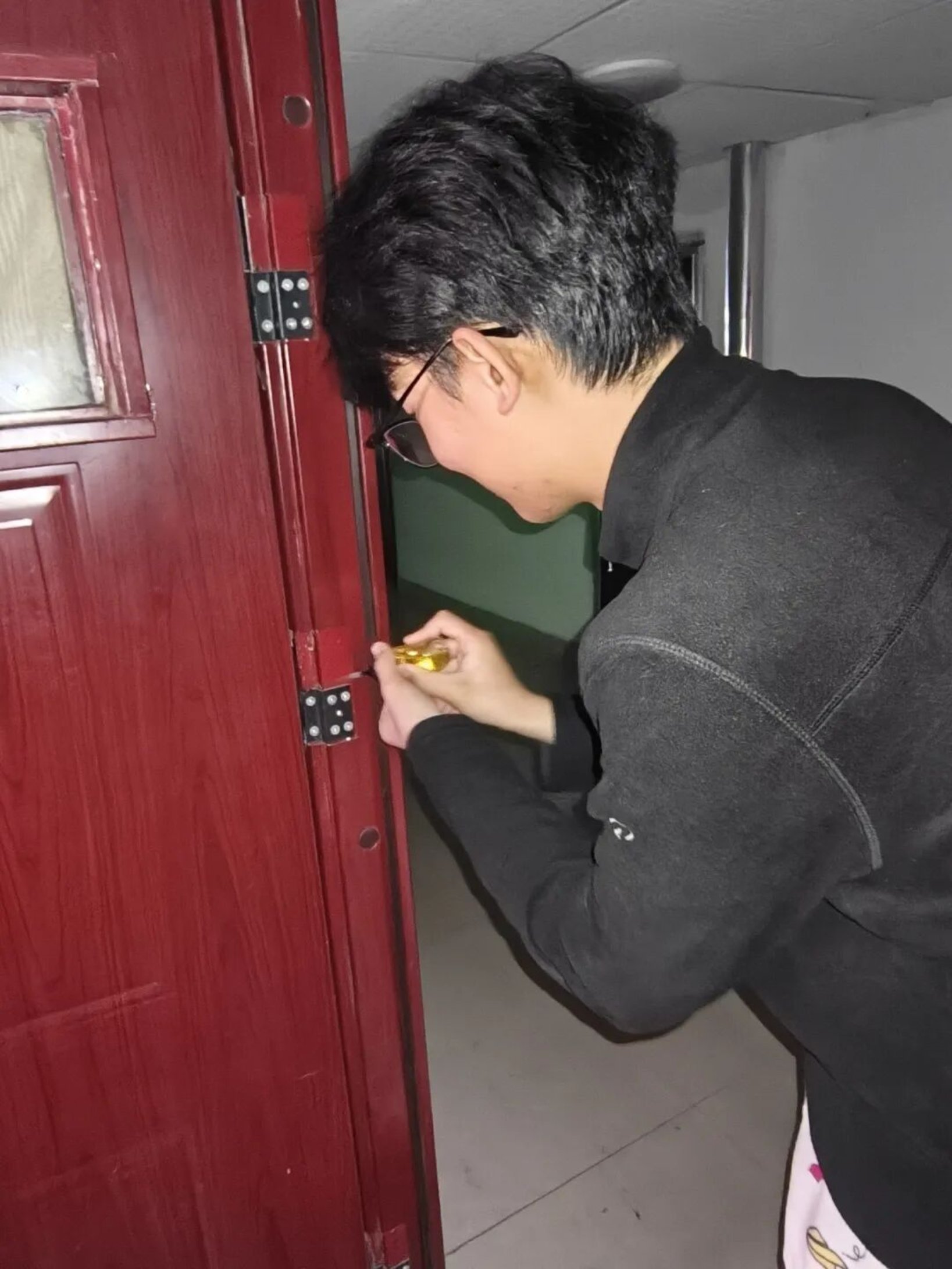 针对部分宿舍门轴干涩、开关时发出异响,抽屉推拉不顺畅等问题,学生干部们分工协作,有的仔细擦拭部件表面的灰尘,有的精准滴加润滑油,有的反复调试开关效果,动作娴熟又认真。“之前宿舍门一开关就‘吱呀’响,尤其是晚上休息时特别不方便,现在经过你们的处理,开关起来顺滑多了,太贴心啦!”刚体验过服务的同学满意地说道。