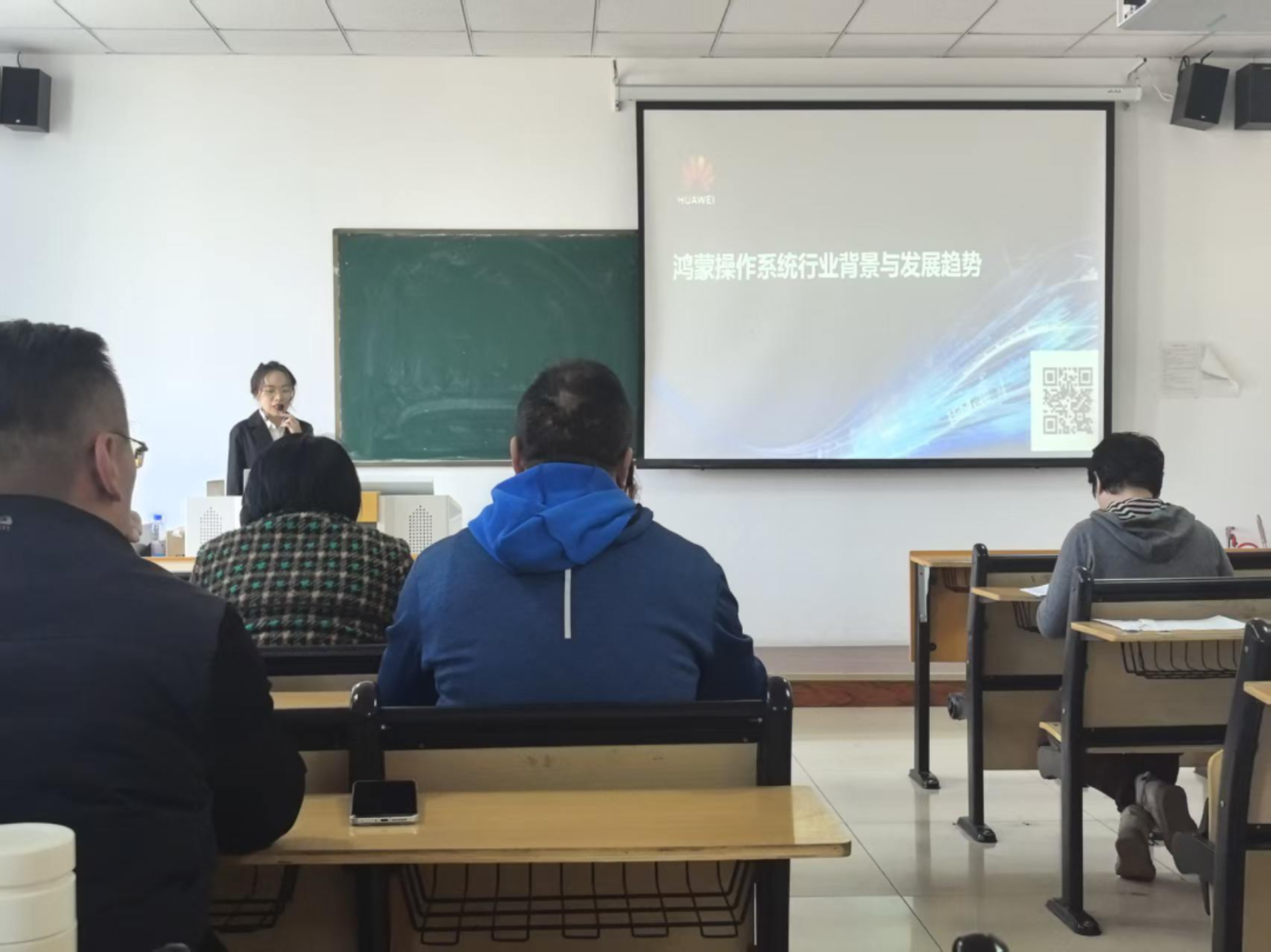2026年3月24日,博文楼4424教室座无虚席。华为物联网专业驻校讲师杜凡带来鸿蒙操作系统发展背景与发展趋势主题讲座,从鸿蒙诞生起源、版本迭代、核心设计、政策生态、市场格局到人才机遇,全方位拆解这款面向万物互联的国产操作系统,为在场教师揭开鸿蒙的技术密码与产业未来。