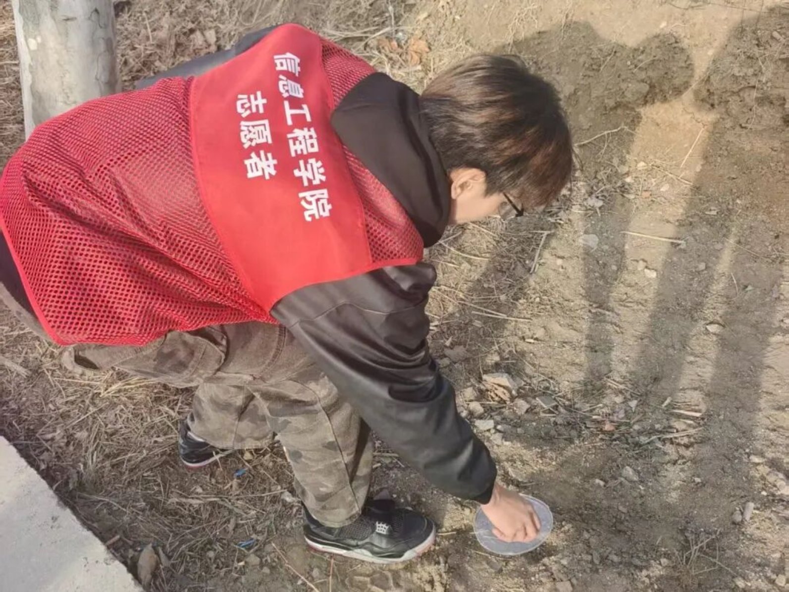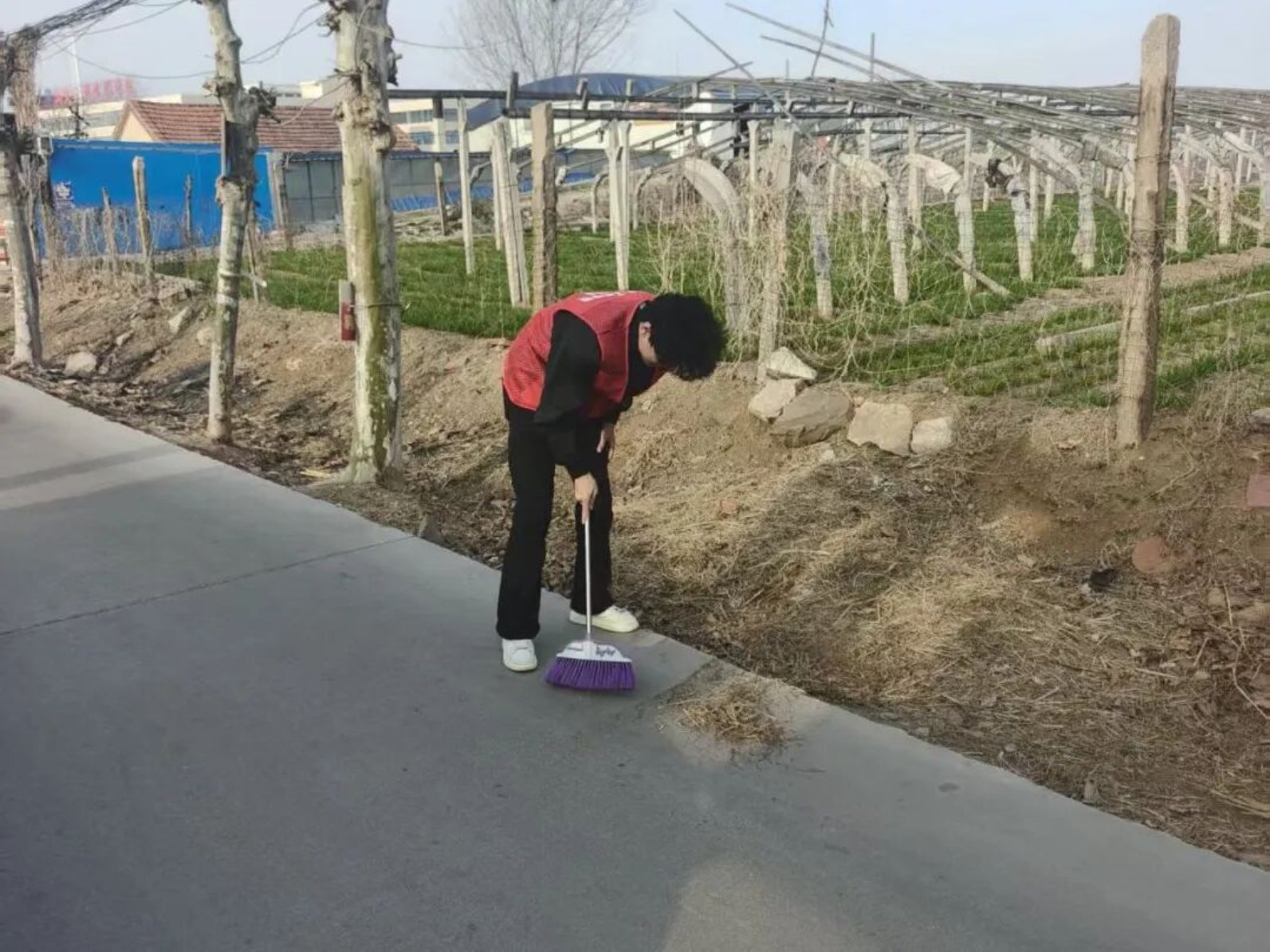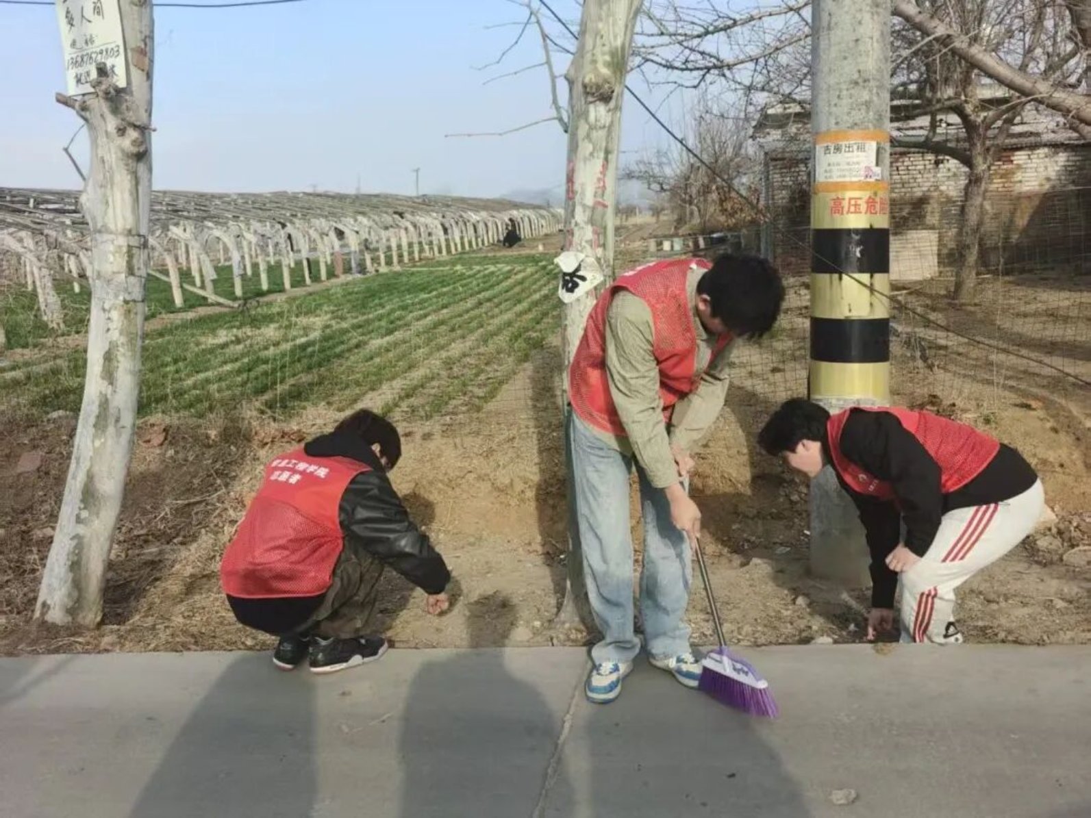躬身实干,美化环境。志愿者们在学院门口集合出发,抵达乡村后迅速分组开展清洁行动。大家手持工具,清扫主干道落叶尘土,弯腰捡拾田间杂物,整理乱堆的石块枯枝,不放过每一处卫生死角。宣传组同步记录下志愿者们认真劳作的身影,定格下青春与奉献的美好瞬间。