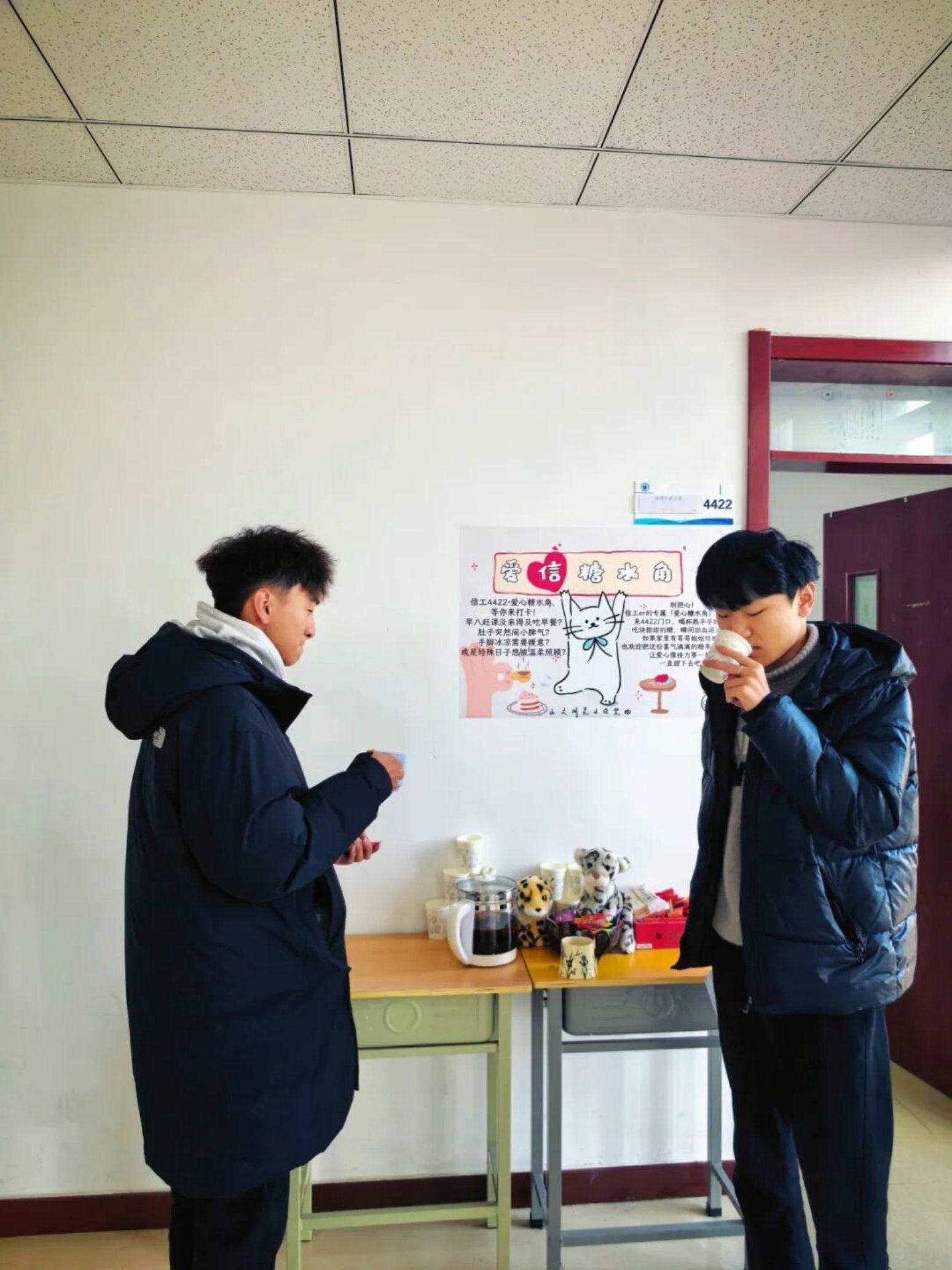 小小的糖水角,装下的不仅是甜滋滋的糖水和糖果,更是信工学院浓厚的人文关怀与同窗情谊。在这里,没有陌生的距离,只有彼此的关照;没有冬日的寒冷,只有人心的温热。一杯热饮,一块糖果,看似微不足道,却能在不经意间抚平焦虑、驱散疲惫,成为同学们校园生活里的小确幸。