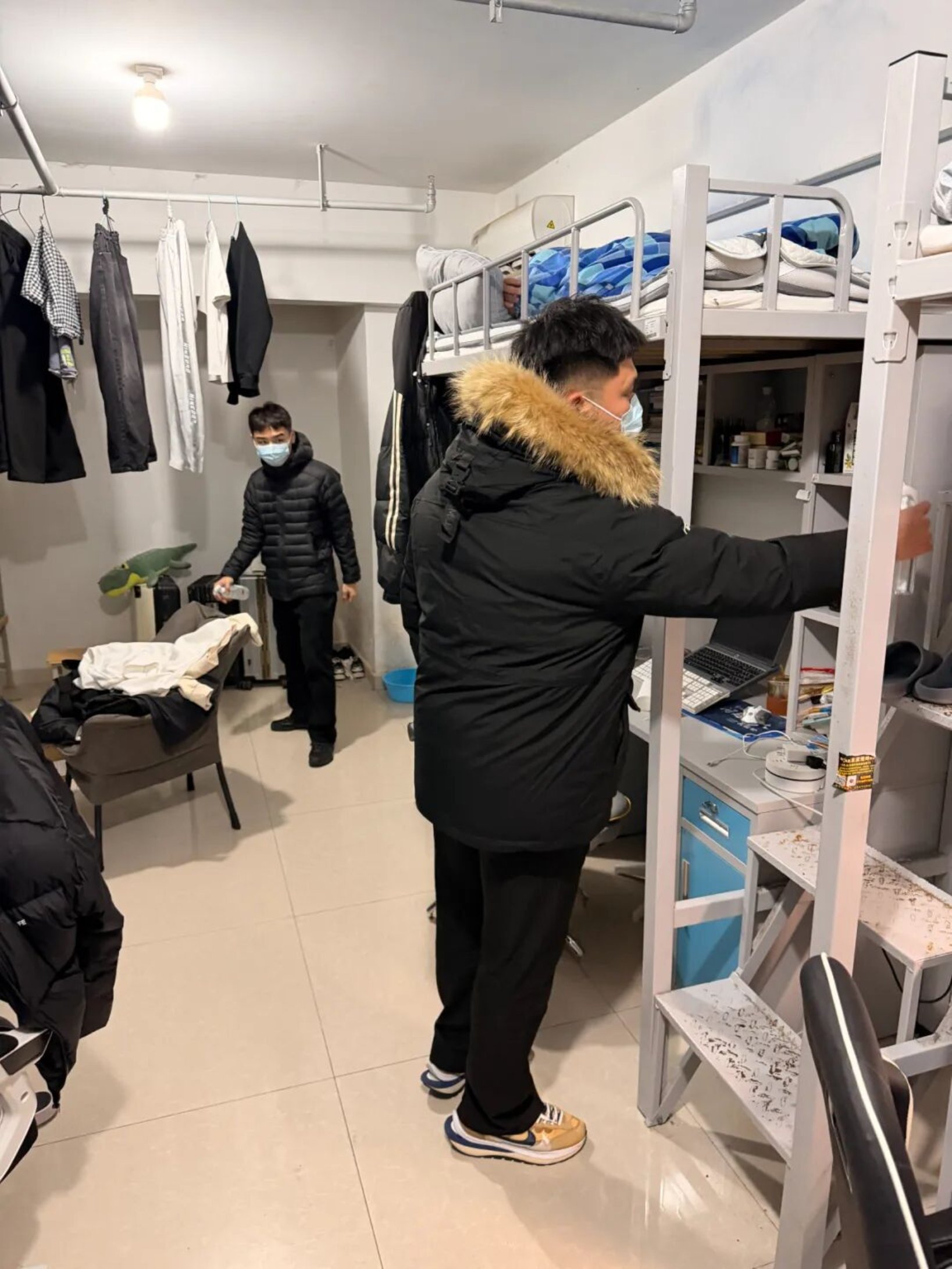 活动期间,信息工程学院学生干部还化身“宿舍守护员”,携带消毒喷壶、清洁抹布等工具深入各宿舍。他们严格遵循消杀标准流程,对宿舍地面、桌面、门把手、卫生间等高频接触区域进行全方位擦拭与喷洒,确保消毒工作覆盖无死角、落实无遗漏,用实际行动为同学们的住宿安全保驾护航。